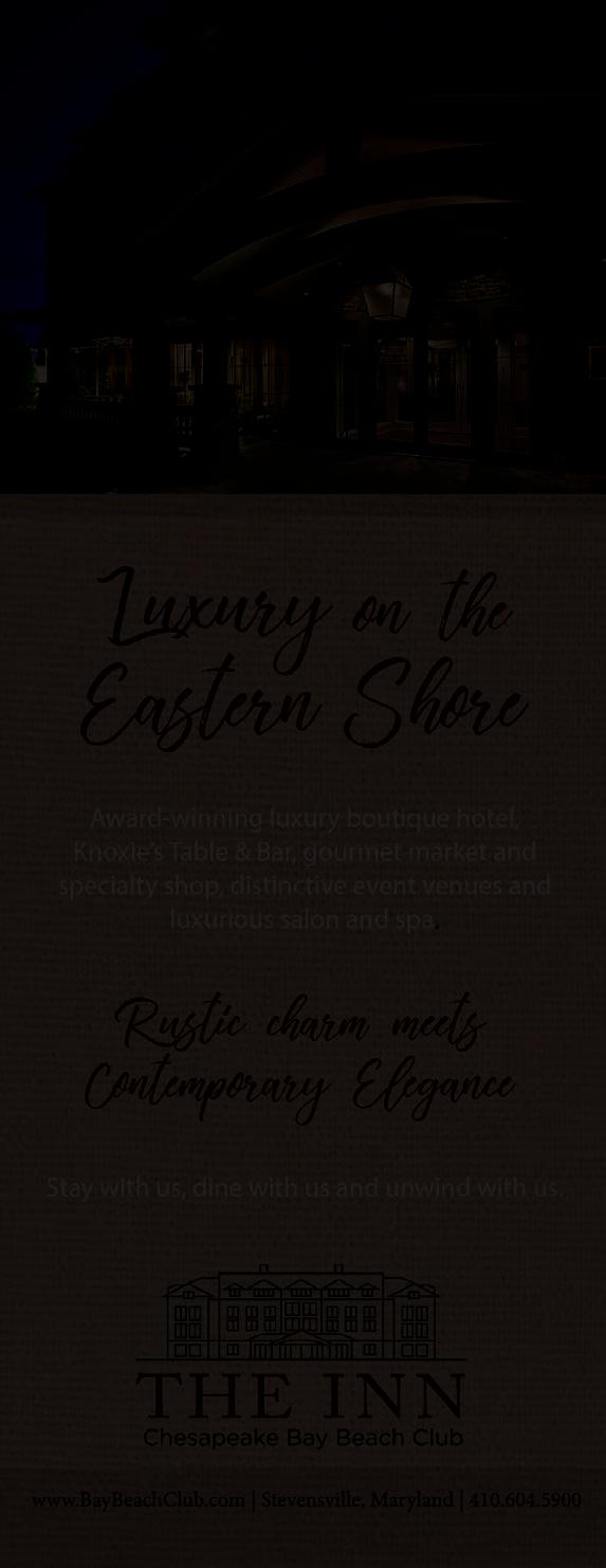 In this, our ninth issue, and our issue focused on the world of boating – a world so ubiquitous on the Eastern Shore – I hope you’ll enjoy learning more about boatbuilding legend Richard Scofield; embark on a journey with a Talbot County family that has made their sailboat their home while they travel around the world; and enjoy the numerous fresh seafood options found around the Shore. Enjoy everything you’ll discover on the pages that follow, and I’ll be seeing you.