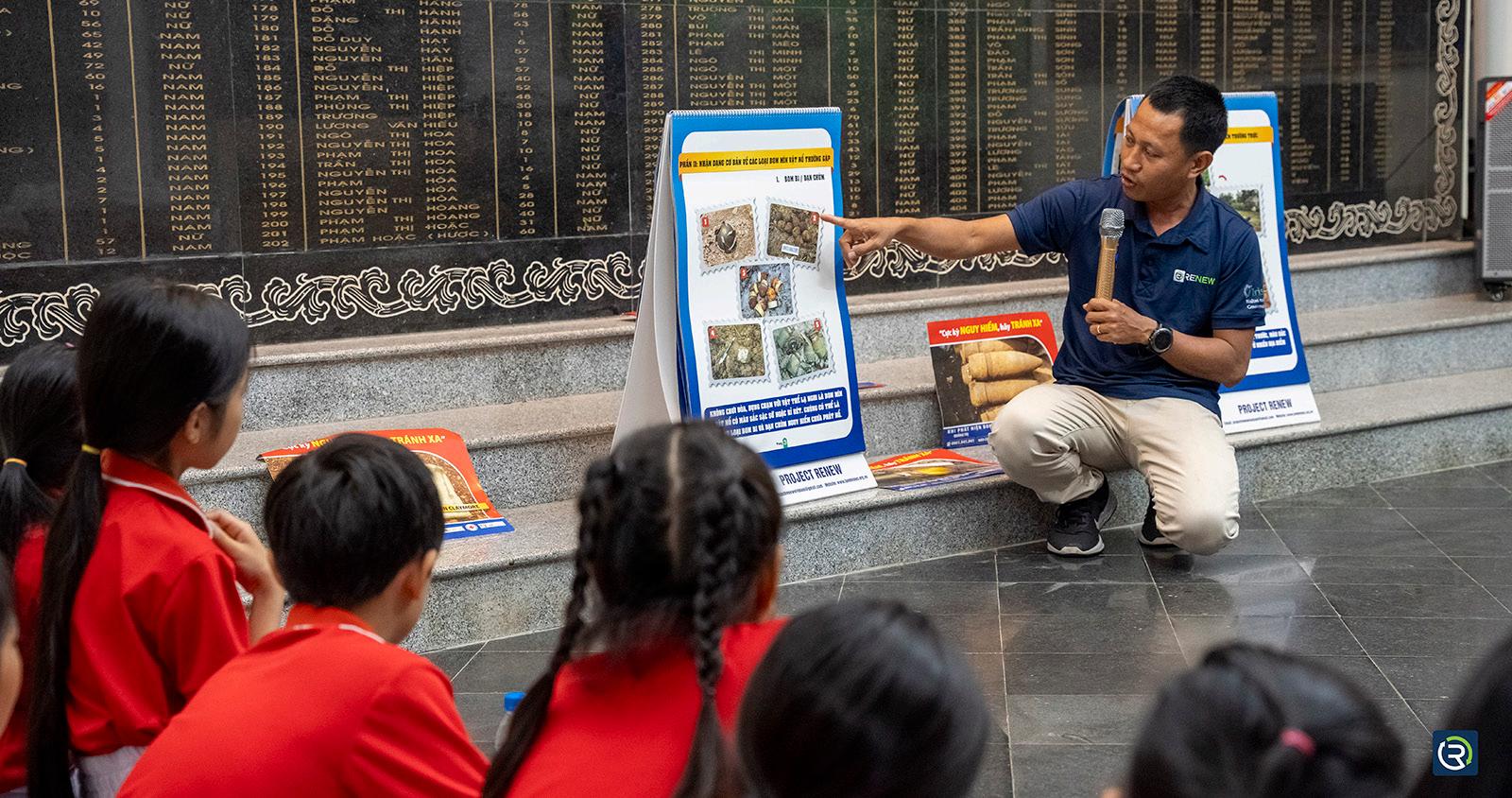 Project RENEW also collaborates with local governments, community organizations and teachers to help children and adults understand the risks of living with unexploded ordnance and how to reduce accidents. Children are especially vulnerable because they are naturally curious and might approach or trigger a strange object and trigger accidental damage.