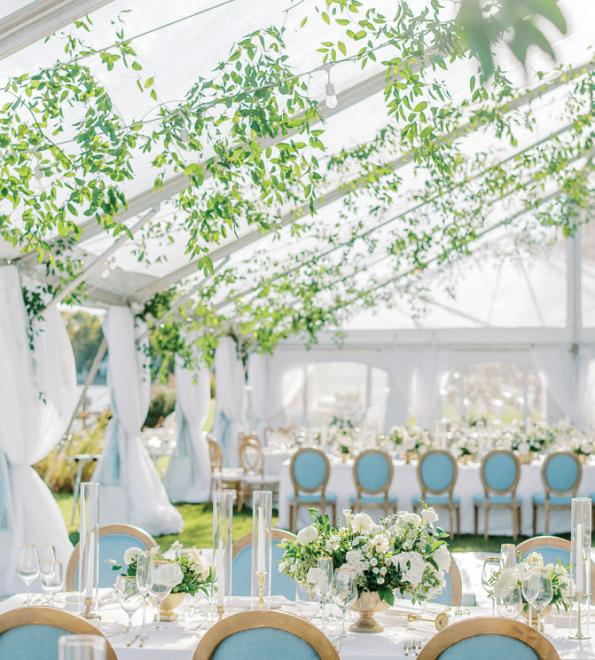 Moore notes, “Basically the only thing the couple needs to bring themselves are decorations. Our staff sets up everything and breaks everything down, leaving [the couple] only responsible for the decor that they bring.”