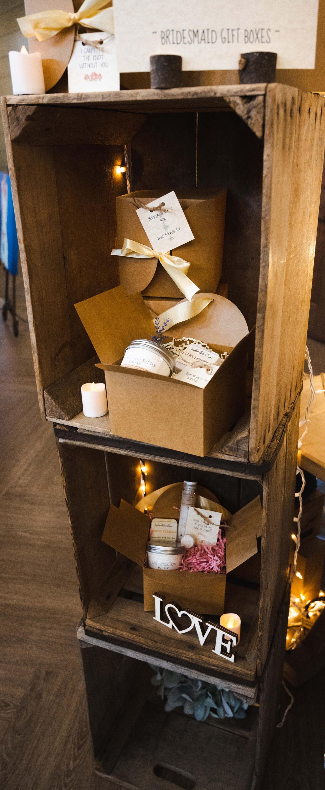 “I would suggest adding variety to a themed basket, such as a spa basket with mini soaps, or specialty soap, body butter, bath salt, and a men’s soap bar,” she said. “And then adding a personalized note or tag from the bride/groom. Guests love things they can actually take home and use, and when you have a variety of sorts, there will always be something for someone.”