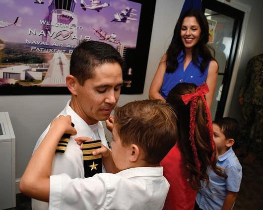 Porter was joined by his wife and children who pinned his new rank on in the presence of colleagues and crew at the NAS Patuxent River Air Operations Building.