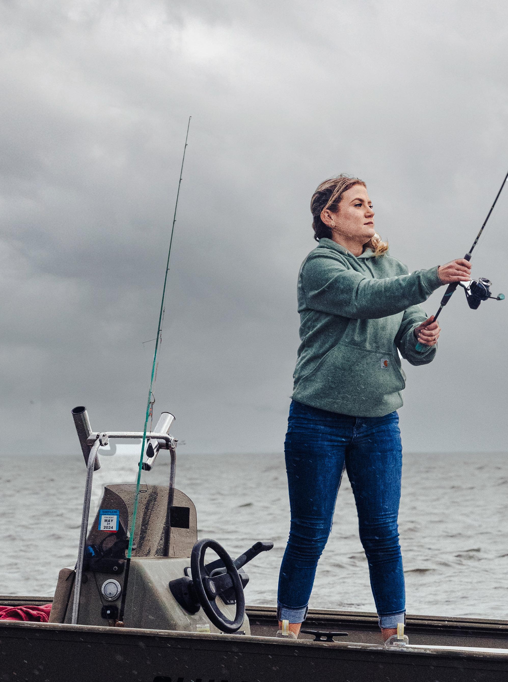 But it’s not just hunting that brings her joy. Watts is equally passionate about fishing, with one of her favorite moments being the day she reeled in a massive rockfish on the bay. “There’s just something about reeling a big fish and everyone is just hootin’ and hollerin’… your adrenaline is running because you never know when that hook could just snap off. The fish could do one wrong twist and bam, it’s gone,” she said.