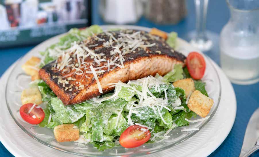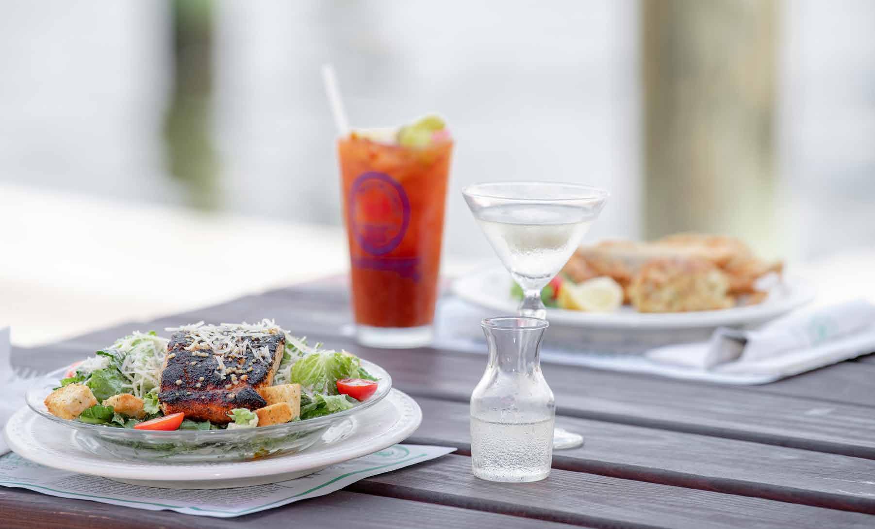 For lighter fare a popular menu item is the Caesar salad topped with a generous portion of Cajun blackened salmon. The spice from the salmon’s pepper compliments the chilled crisp romaine lettuce. Guests can enjoy several signature drinks from the bar, including the St. Michaels orange crush, a fresh pineapple martini, or a vegetable-infused bloody mary.