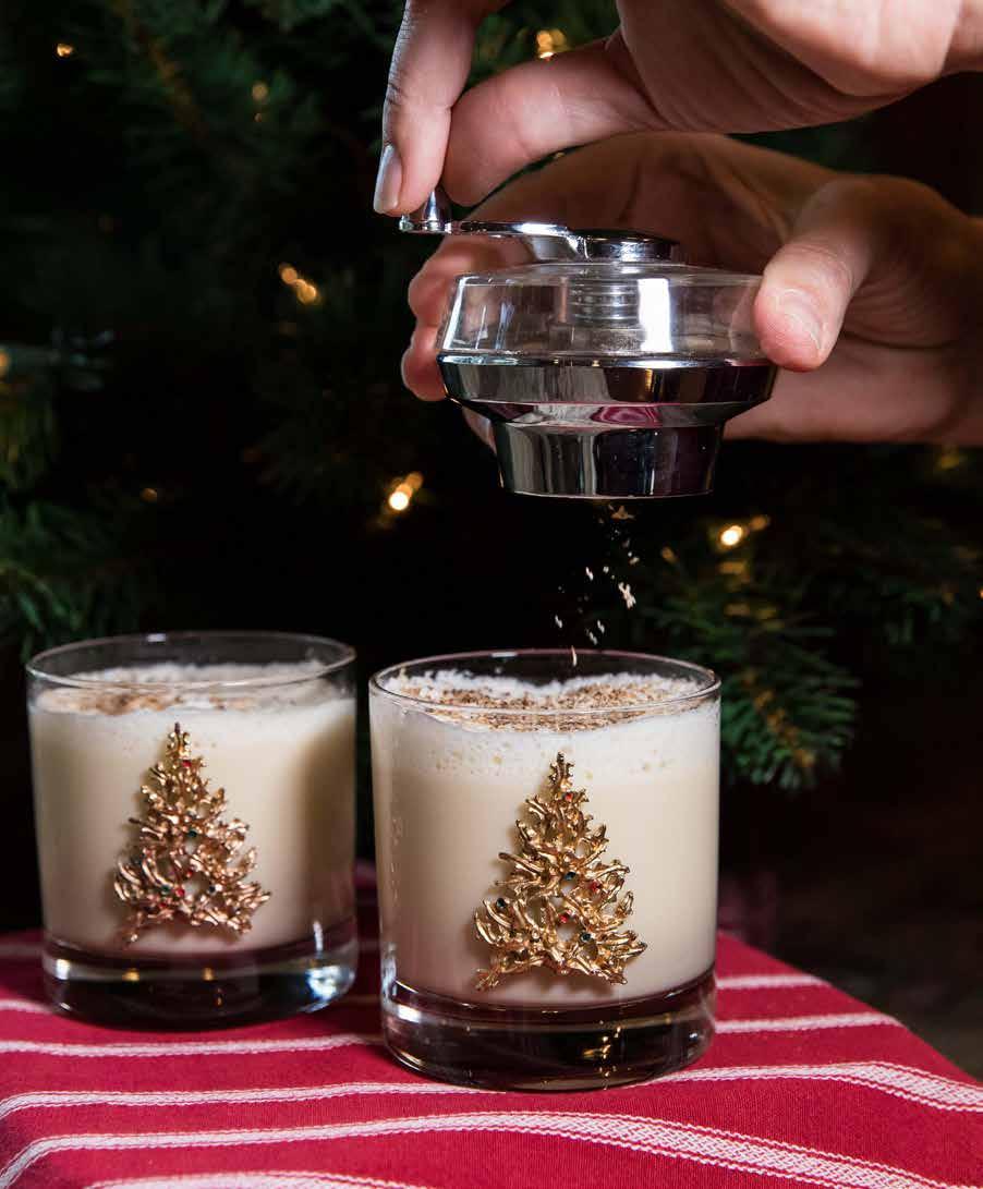 In another bowl, beat the egg whites until stiff peaks form. Gently fold egg whites into egg yolk mixture. Ladle into cups and top with freshly ground nutmeg.