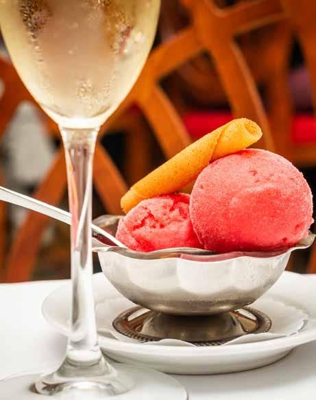 Minutes later I was presented with a perfectly round scoop of freshly prepared blackberry lime sorbet. I skimmed the deep purple confection with my spoon and popped a dollop on my tongue. Divine. I then sipped a little of my wine and enjoyed another spoonful, and this time: magic. The bubbles danced around on my tongue and the tangy blackberry played well with the dryness of the wine. Every time I sipped the wine and had a taste of the sorbet, I had my own little magical fireworks in my mouth.