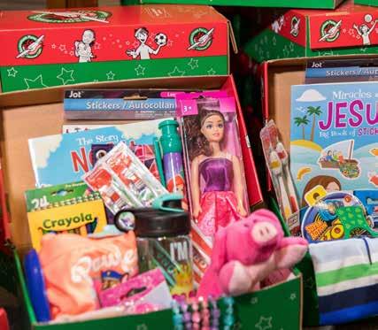 it unique. You see the numbers of boxes increase, but it is hearing the stories of the recipients about the power of prayer in their lives that is so amazing. In addition, all ages can participate in this ministry — from the oldest to the youngest, packing shoeboxes for these children in need. Older volunteers like making the crafts and packing the boxes with their family members so it becomes a multigenerational effort. There is a 101-year old man from Western Maryland who makes wooden cars for the shoeboxes every year.