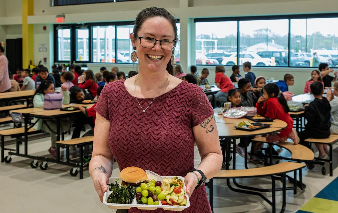 But Brewster’s efforts didn’t stop there. Within every county school, she is introducing healthy eating and environmental awareness to help county students embrace where foods come from and how to manage the waste from our food sources. Caroline County Public Schools offers locally sourced fresh fruit, veggie bars and salad bars. Students in the schools and Judy Centers throughout the county grow hydroponic lettuces, basil, chives, dill, mint and cilantro in tower gardens grown from seedlings from local farmers. Students also learn about mindful eating and making fresh fruit and vegetables the main event with the entrée being secondary. The schools have fruit-infused water and clear dispensers that they can help themselves to throughout the mealtime.
