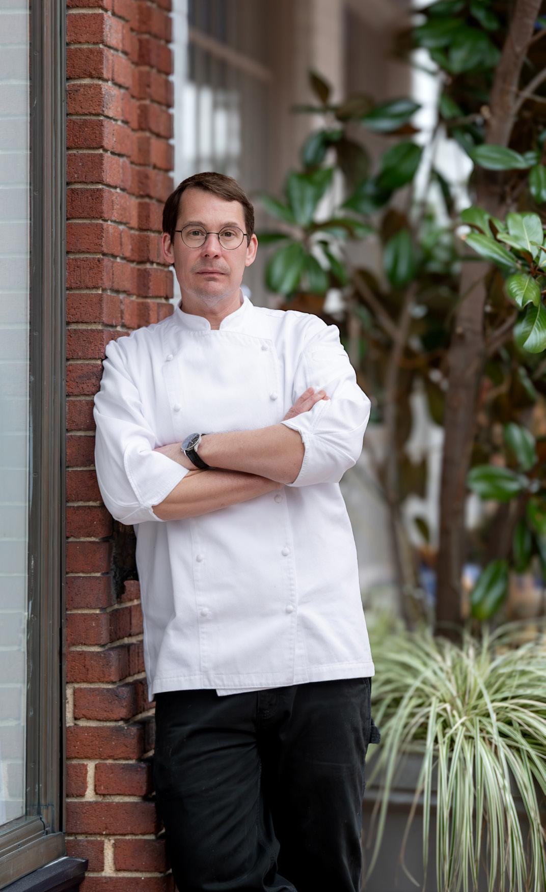 In 2024, Harley Peet was named as a James Beard winner, the first to receive this recognition on Maryland’s Eastern Shore. Here he poses outside Bas Rouge, where he is the executive chef.