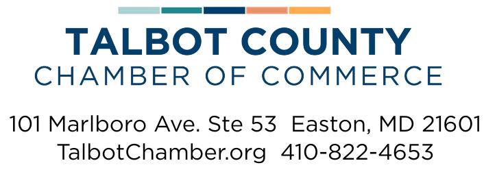Chamber events are open to the public—members enjoy VIP pricing and other perks. To register, TalbotChamber.org.or call 410-822-4653