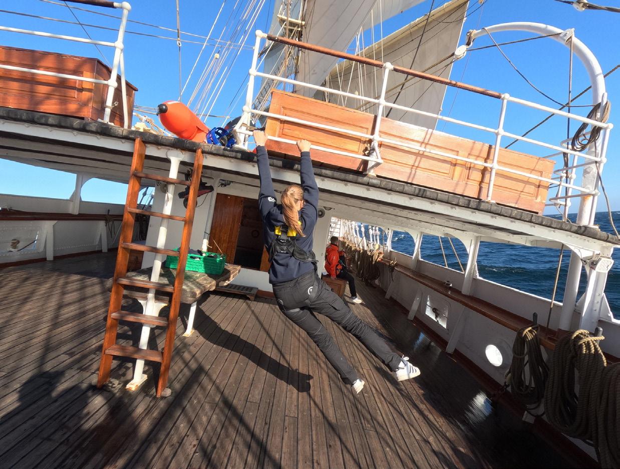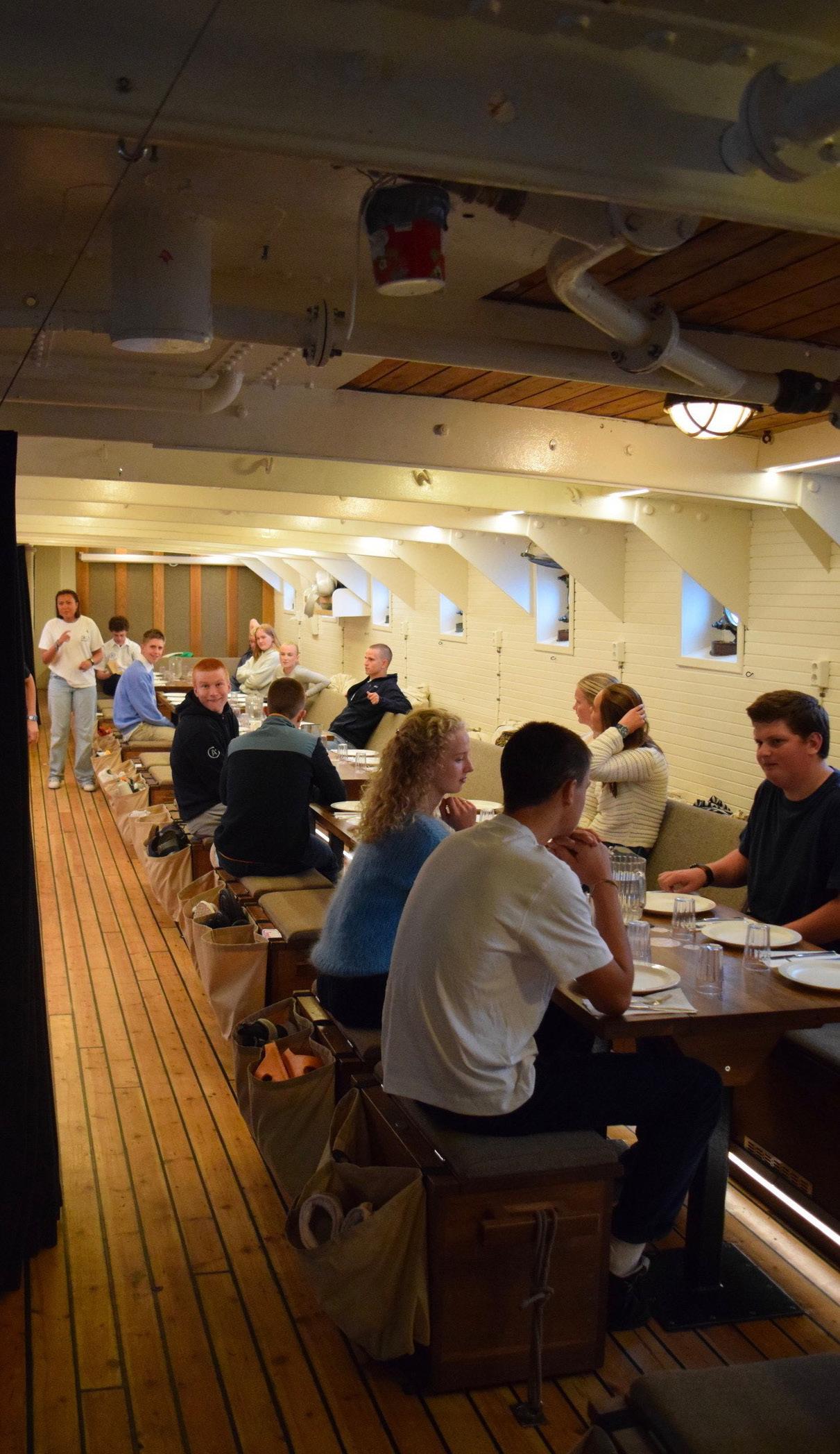 Students were woken up at 6:50 a.m. each day. They fed 86 people three meals a day and had four classes that ran from 9 a.m. to 6 p.m. The students rotated responsibility between cooking, watch, cleaning, and caring for the historic ship.