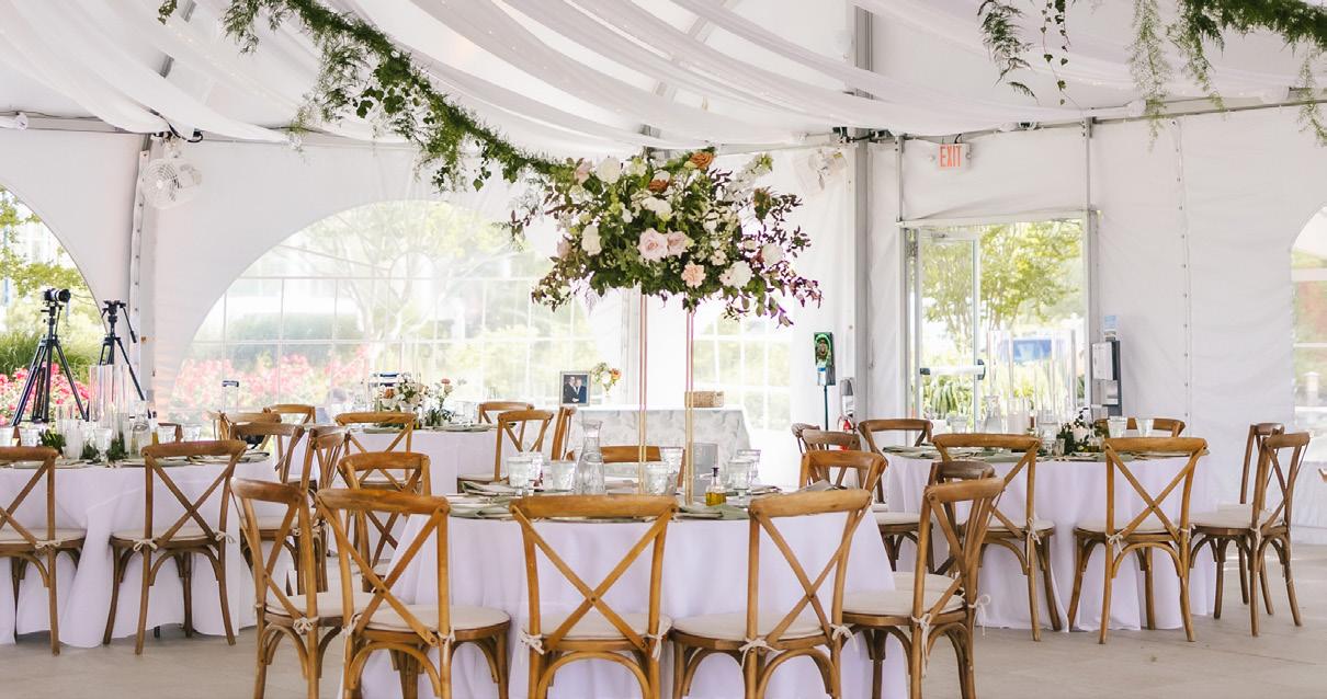 The pavilion and home sit on a 25-acre farm with a breathtaking 20-mile view of the Potomac River. Fit with a stretched 130-foot pier, the pavilion is perfect for couples looking for an exclusive getaway feel for their event. Couples may use two ready rooms inside the home and have the option to add fireworks and “splash golf,” or biodegradable golf perfect for a waterfront course, to their event.