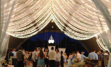 Top left: Draping and lighting inside of the enclosed pavilion.