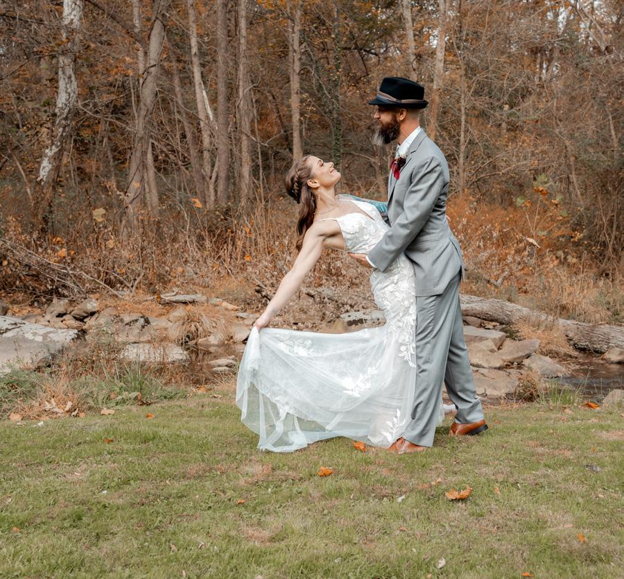My favorite part of our wedding day was absolutely our small ceremony by the creek in our backyard. Jesse and I really fell in love with each other and nature here, so it was a no brainer. We were so nervous it’d be cold or rainy at the beginning of November, but we were gifted the perfect weather to get married in our favorite place in the world, and it was magical.