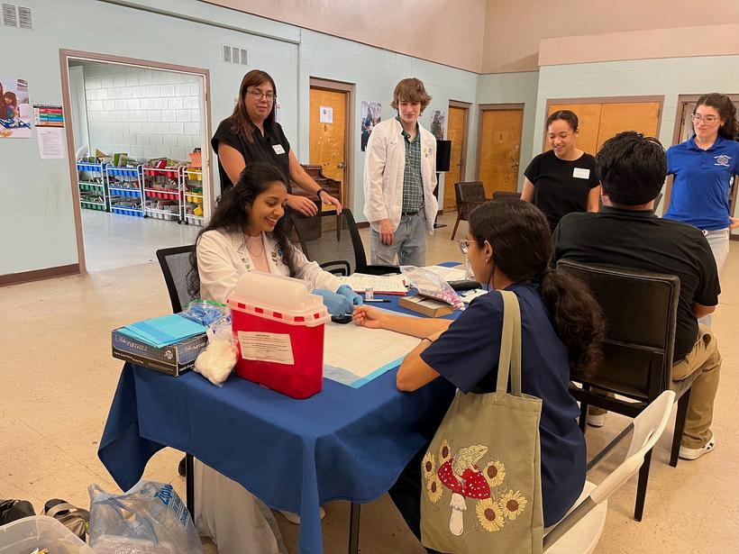 On November 9th, OLEF and APhA-ASP Operation Heart & Diabetes partnered to host a Point of Care Testing event at St. Francis House. Pharmacy students provided blood pressure and blood glucose screenings, promoting community health and well-being.
