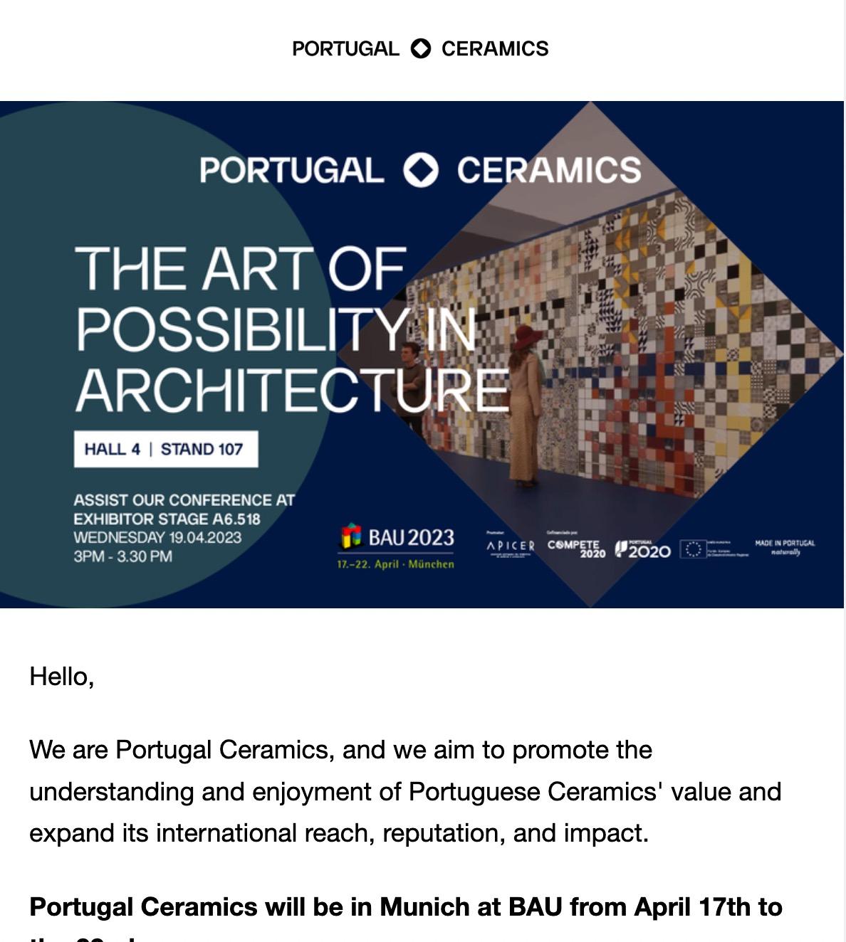 • Comunicar a presença da PORTUGAL CERAMICS no evento “BAU”, em Munique