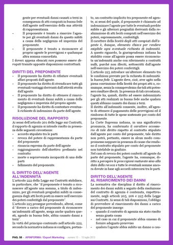 Diritto dell’Agente al risarcimento dei danni La normativa che disciplina il diritto al risarcimento dei danni subìti a seguito della risoluzione del contratto di agenzia è contenuta, rispettivamente, negli articoli 205, 206 e 225 della Legge sui Contratti. Ai sensi di tali disposizioni, l’obbligo di provvedere al risarcimento dei danni a carico del preponente insorge: - quando il contratto di agenzia sia stato risolto senza giusta causa - nel caso in cui il preponente abbia omesso di fornire adeguato preavviso - qualora l’agente abbia subìto un danno a cau-