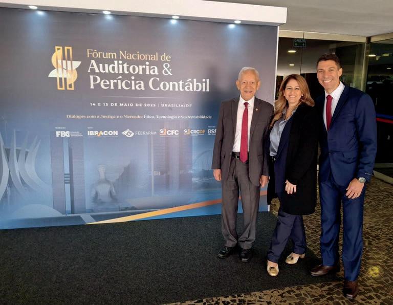 Nos dias 14 e 15 de maio, o Teatro Poupex (Brasília) sediou o Fórum Nacional de Auditoria e Perícia Contábil, promovido pela FBC, com o tema “Diálogos com a Justiça e o Mercado: Ética, Tecnologia e Sustentabilidade” Representando a APJERJ, participaram Dr Ril Moura Dra Georgia Mejdalani Rodrigues e Dr Thiago Ruas Ramos O evento abordou os desafios da atuação pericial e contábil no Judiciário, uso de inteligência artificial, sustentabilidade e valorização da prova técnica