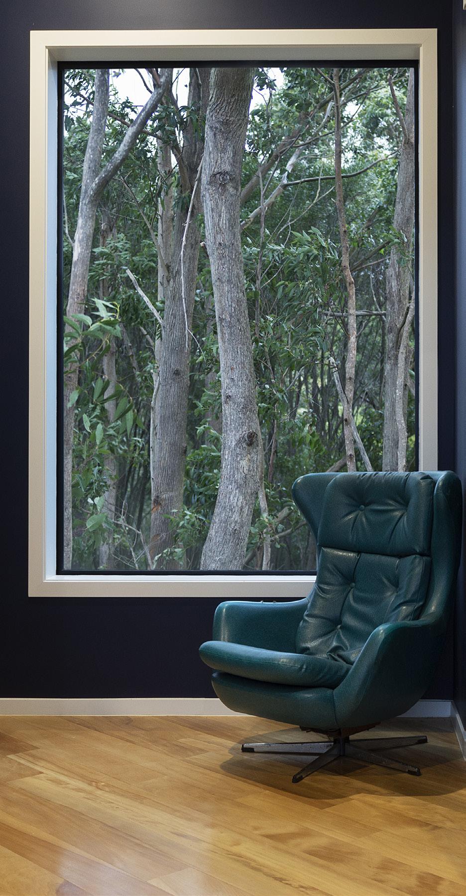 It’s the view that’s the most important feature of the house, so generous use of large picture windows and sliding doors was used throughout. One of the best things about living here for Jane is opening the electric blinds from bed and watching the sunrise. Geoff’s favourite is having breakfast on the deck and watching the inversion of clouds from his lofty he