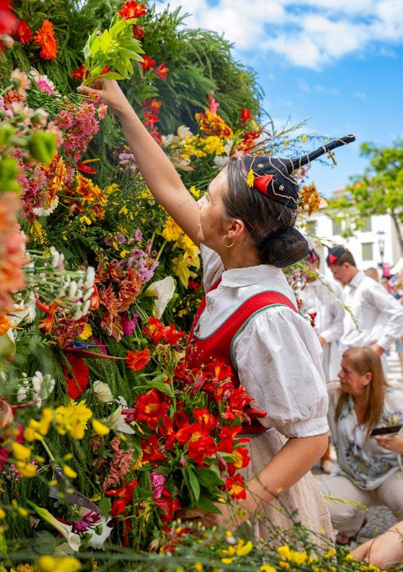 During the Flower Festival, the city fills with colour due to the traditional flower carpets, which can be admired along the Central Walkway of Avenida Arriaga, next to the Flower Market, in front of the building “Loja do Cidadão” as well as in the square - Largo do Corpo Santo. These ephemeral creations stand out for their geometric designs and meticulous combination of flowers and greens, revealing the creativity and know-how associated with Madeiran tradition. More than just decorations, the flower carpets are an artistic expression which celebrates the beauty and diversity of the flora in Madeira, providing residents and visitors with a journey filled with colour, fragrance, and charm.