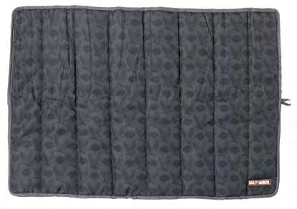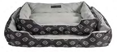 Materials: Waterproof polyester with plush cotton filling Graphics: Repeat Bar & Shield Eagle pattern, Harley-Davidson font, Bar & Shield Eagle