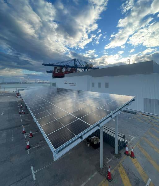 En línea con la ambición de APM Terminals compromiso de APM Terminals de ser neutra en carbono para 2040, APM Terminals Valencia está embarcada en un ambicioso proyecto de energía solar. Esta iniciativa subraya el compromiso de la empresa con las operaciones sostenibles aprovechando la energía renovable para alimentar las actividades de su terminal. El proyecto, que comenzó en diciembre de 2024, prevé la instalación de 1.674 paneles solares en varios tejados de la terminal. Esto incluye 502 paneles con una potencia nominal de 655 vatios cada uno, y otros 1.172 paneles con una potencia nominal de 575 vatios, que cubren una superficie total de 4.752 m². Con una capacidad total instalada de 1 MWp, se espera que estos paneles solares produzcan aproximadamente 1,2 GWh al año. Los paneles se instalarán en varias estructuras, como las marquesinas del aparcamiento de oficinas, el taller-almacén de nueva construcción y varias marquesinas repartidas por la terminal. El proyecto también incluye mejoras adicionales centradas en la soste-