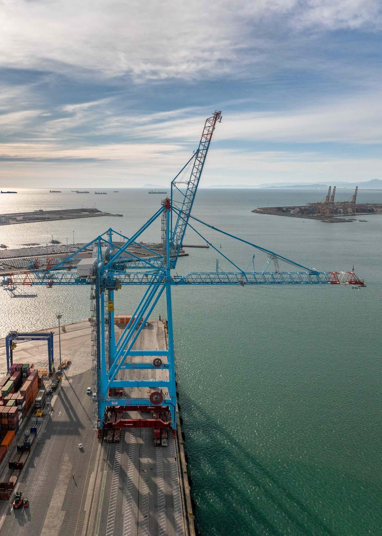 Creo que coincidirán conmigo en que las imágenes de dron que ilustran sus páginas son espectaculares. Sin duda, merecía la pena hacer volar una cámara para captar momentos que van a pasar a la historia de nuestras terminales. Desde el traslado de las dos nuevas grúas STS desde su zona de montaje hasta el muelle de Levante en Valencia, a la llegada Barcelona del Zhen Hua 35 con las tres nuevas STS tras más de 10.800 millas náuticas desde la fábrica en Shanghai, o la celebración de las primeras escalas de la Cooperación Gemini.