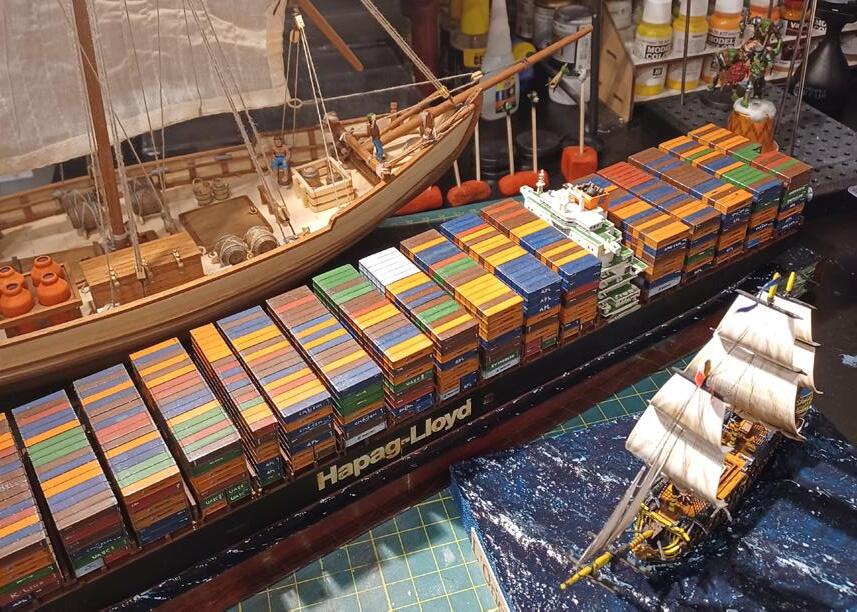 u padre era ebanista , y el olor de las birutas de serrín quizá tuvieron algo que ver con que Francisco Álvarez, Vessel Planner de APM Terminals Gijón, buscara una afición relacionada. Porque Kiko es modelista, y disfruta construyendo a escala vehículos y barcos, documentándose para decorarlos, pintar miniaturas y montar dioramas. Por todo ello, merece su espacio en la sección Fuera de Contexto de la 14º edición de Spanish Gateways NEWS, nuestra revista de comunicación interna. Porque espacio seguro que ya tiene en casa para guardar el portacontenedores y los veleros que construyó a diferentes escalas. “Tengo otros dos barcos que hice en casa de mi suegra, porque aquí ya no caben”, bromea. Su afición ha ido evolucionando, y de la construcción naval y de vehículos históricos a escala en madera pasó a otros materiales y a buscar proyectos con personajes que les dieran vida, y que necesitaban de pintura. “Y ahora estoy con miniaturas de Warhammer”, piezas de pocos centímetros del juego de estrategia con las que muchos disfrutan más del proceso de pintarlos que del propio juego.