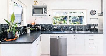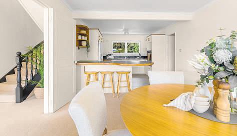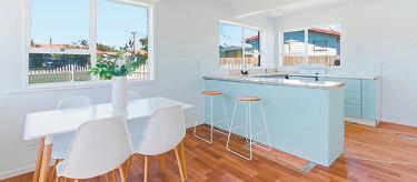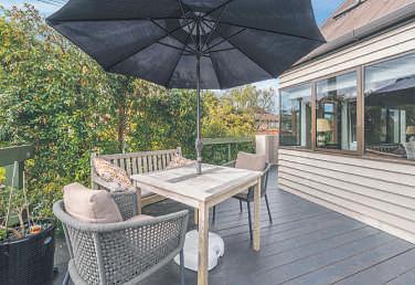 Threebedroomsandtwobathrooms meetfamilyneeds–thestyleof bothbathroomsmatchingthe contemporarythemeinthekitchen. Designedaroundentertaining,the kitchenservesdininginsideandout onthedeck.Backyardentertainment