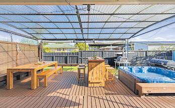Withmultiplesleepingoptionsthis clevertwo-poddesignoffers flexibleliving.Thespacious connectingdeck,separatespapool areaandfullylinedgaragewith potentialtoconverttoasleepout makeitanidealsetupfortwo families.Generousparkingfor boats,vehiclesandtoys.