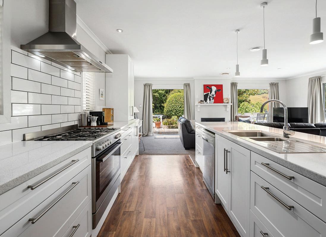 takesonanotherlevel,however.A barbecueburehasabuilt-inbrick featureandshelteroverheadtoallow cookstodotheirthing,whilefamily andfriendsenjoythesun.Kidshave theirownspace,withamplelawnfor playgroundcricketorfootie. Anothertierhousesagardenshed tostorethetoolsandaplacefor gardenerstogrowfreshveggies andherbs.Itisahomethatkeeps ongiving.Spaceforeveryoneinthe familytoenjoyprivacy.Spaceto stretchandgrow.Spaceforalternative livingoptionsaswell.Beitsomewhere toworkinpeace;tobringextended familybackintothefold;orconsider thepotentialforguestaccommodation –thispropertyatLakeOkarekaholds thekey.