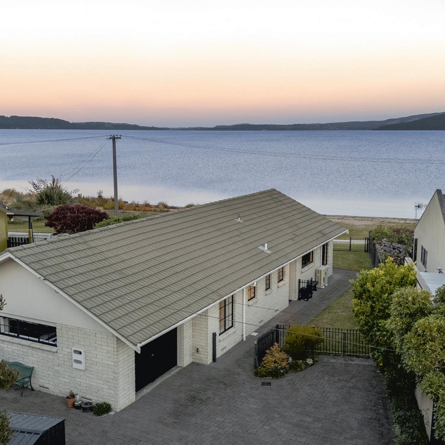 homes,locatedclosetothelake& thevillage.Thecharacterthree bedroomhomeatthefrontis currentlyrented.Themodern,two bedroomhomeoffersinternal accessgaraging&lightfilledliving thatopenstocoveredpatios.