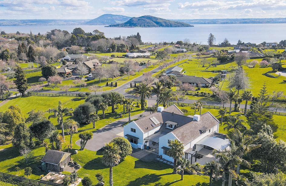 Beautifully landscaped, the residence captures sweeping views of Lake Rotorua and rural surrounds Built in 2004 by Glencoe Construction the 377sqm home features five bedrooms, multiple living areas, four bathrooms, and a master suite with balcony Quality appliances, underfloor heating solar hot water gas fire and heat pumps ensure comfort Outdoors enjoy spa covered entertaining and double garage with workshop