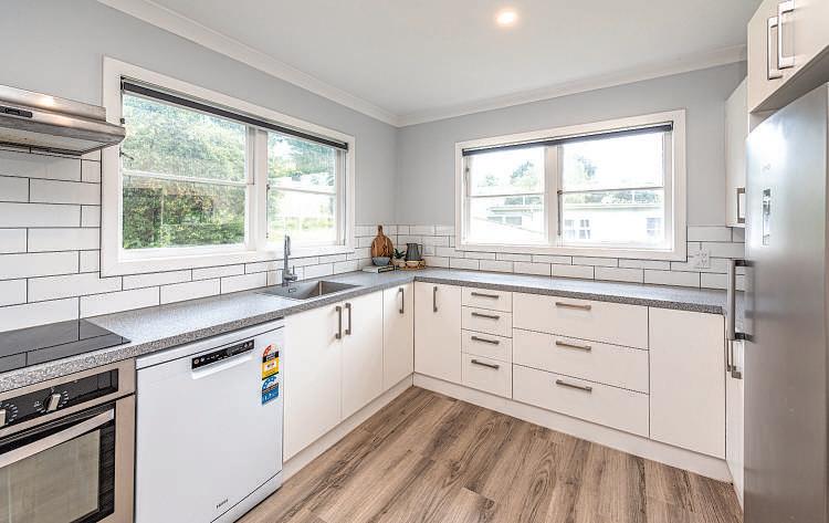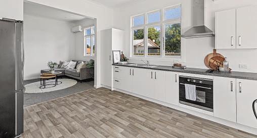 Themodernkitchenboastsgenerousstorage,sleekcountertopsandisperfectlypositionedforseamlessflowintotheopen livingspace.Thekitchenflooringwasre-purposedfromthelocalRegentTheatre,addingatouchofcharacterandcharm. Completingthetopflooraretwowell-proportionedbedrooms,whilethetiledbathroomprovidesanidealbalanceof convenienceandluxury.Addedcomfortcomescourtesyofaheatpumpandwoodburner,ensuringthatyourhomeiscosyand warmthroughouttheseasons.Oneofthestandoutfeaturesofthispropertyisitsversatilelivingoptions.Theareadownstairsis perfectformulti-generationalliving.
