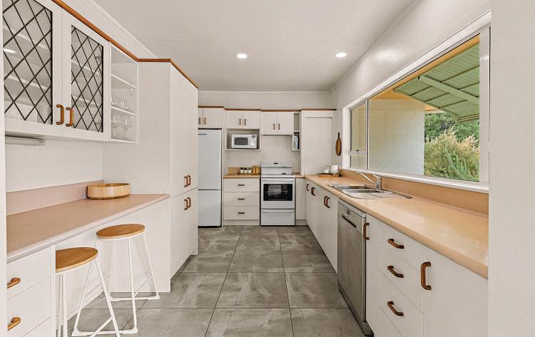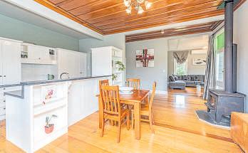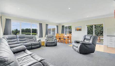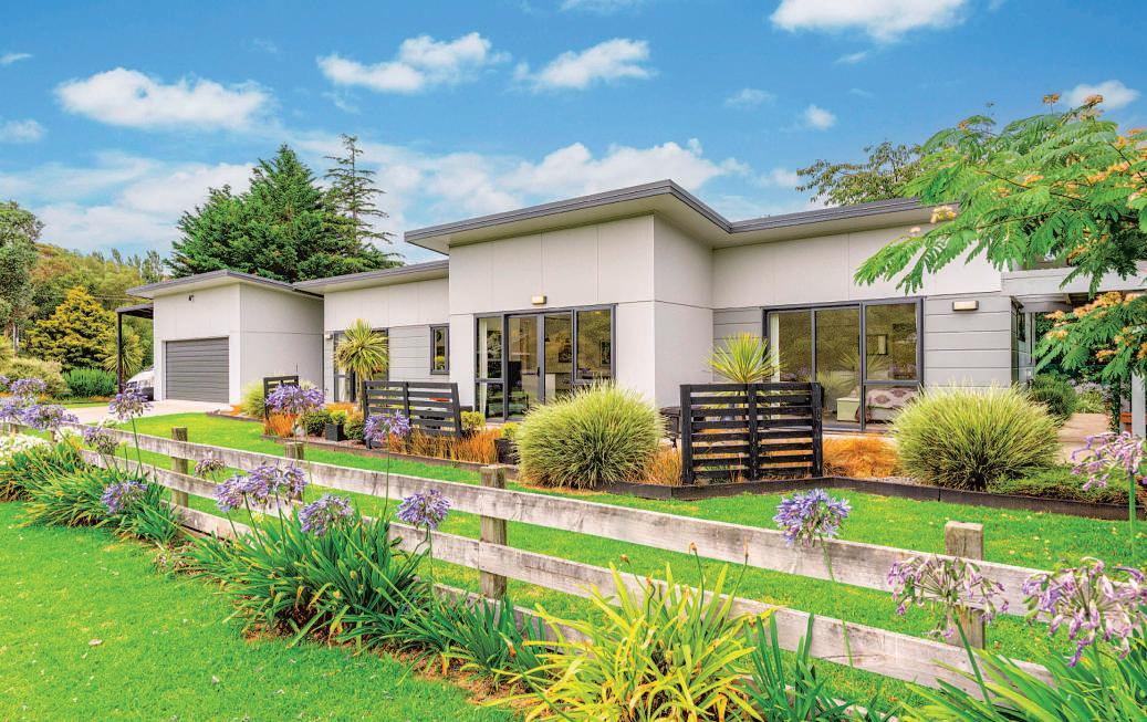 Tuckedawayattheendofapeacefulcul-de-sac,thisinvitingfourbedroomhomeissetonanexpansive2,823m2 (approx)section,surroundedbyflourishingfruittreesandestablishedfoliagethatcreateatruesenseofprivacyand calm.Stepinsidetoagenerousopen-planlivinganddiningspace,wherelargewindowsframetranquilgarden outlooks.Asecondfamilyloungesitstotheright,providingflexibilityforrelaxedlivingorquietretreat.Thespacious kitchenalsoenjoysviewsacrossthegardens,connectingtheheartofthehomeseamlesslywithitsnatural surroundingsandenhancingthehome’ssereneatmosphere.Allfourbedroomsarewell-proportioned,eachoffering excellentstorageandtheirownuniquegardenviews.Comfortisassuredyear-roundwithasolarhotwatersystem supportedbyelectricboosters,whileawoodburner,heatpumpandheattransfersystemworktogethertokeepthe homewarmandcosythroughthecoolermonths.