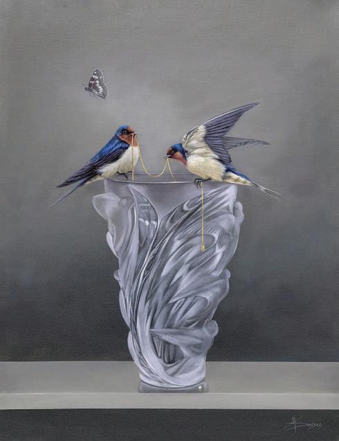 “Ithenstartedtoincorporatethebirds thatIwasseeinginmygardenanda newstyleemerged.Ithenrealisedthat theChinaIwaspaintingwasasdelicate andfragileasthewildlife.Thatbrought newmeaningtomywork,andIwas inspiredtocontinuethattheme.Some paintingshaveareallydeepmeaning, butIliketoleaveituptopeopleto decidewhatitmightmeantothem.”