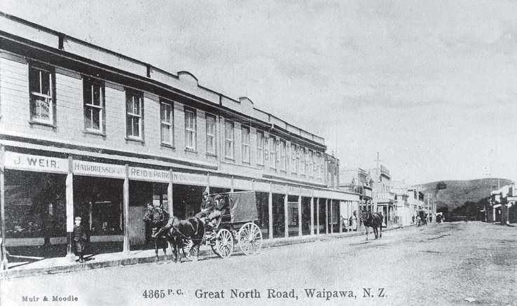 GreatNorthRoad,Waipawa Signsonbuildings–“J.WEIR-HAIRDRESSER REID&PARKIN-CHIROPODIST[?] BLYTHES”
