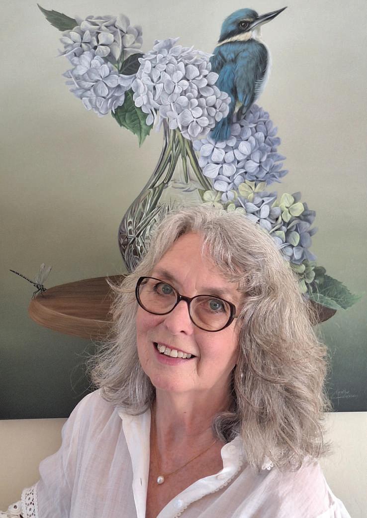 Since her move to New Zealand the focus of her work has changed from the wild animals of Africa to the wildlife and gardens surrounding her rural property