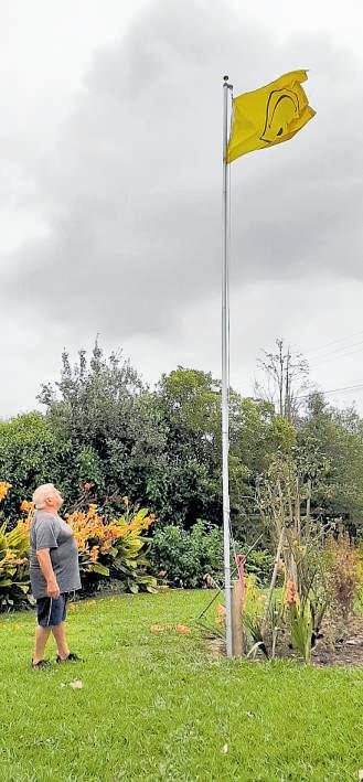 Waipawa’s TerryKingston withhis “unhappyface” flag,whichhas attracted afew comments.