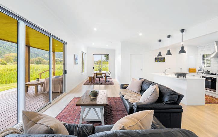 Inside,theopen-planlayoutisdesignedtocelebratethe view,withasleekislandkitchenandscullery,light-filled loungewithgasfire,andaformaldiningspaceopeningtoa shelteredwesterncourtyardandaneasternpatio.
