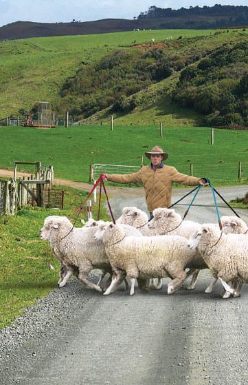 Aimingto reduce trafficcongestionin ruralareas,a newlaw comesintoeffect todayrequiringallsheeptobeleashed whileonpublic roads.Savvy farmers areofferingsplitleasheswith multiple collarstohelpthosemostinneed.