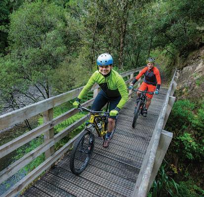 HometothelegendaryMotu Trails –thisstunningnetwork oftrailsispartoftheofficial NewZealandCycle Trailand consists of atrio of distinct routesextendingfromthecoast tobackcountrywithpanoramic ocean,forestandmountainviews. Thesethreeuniqueridescanbe completedindividuallyoras a91 kmloopfor amulti-dayride.
