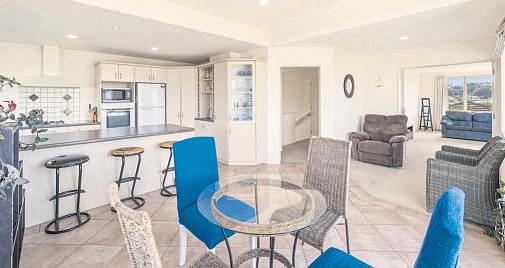 PalmSpringshasaniceringaboutitwhen tellingpeoplewhereyoulive.NotPalm SpringsUSA,ofcourse;PalmSprings PapamoaBeach–sisterestatetoRoyalPalm Beach.Asthenewerofthetwosubdivisions, PalmSpringsdevelopedmuchofitsidentity aroundasemi-tropicalambienceand proximitytoeverythingthatPapamoaoffers. Locationisakeyfactorwiththishome –particularlyforfamilies.Sittingnear playgroundsandwaterwaytrailstocycle andwalk,thisisalsonearschooling.Itsitsin betweentwoPapamoa‘village’centres:an easydrivetoPapamoaEast’soriginalvillage withitsconveniencestores,eateriesand