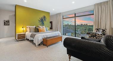bespoke kitchen an entertainer’s dream; function and flow linked with formal dining and the family lounge – complete with a wood burner Both open outside to a sheltered patio setting that gazes out to the playground lawns and gardens – adventure for children and pets, and also an invitation for garden parties around the swimming pool, after a day on the tennis court With a separate, fireplace lounge for peaceful evenings when the drapes are drawn, this home is a wonderful partner for what is on offer in terms of lifestyle – and future income