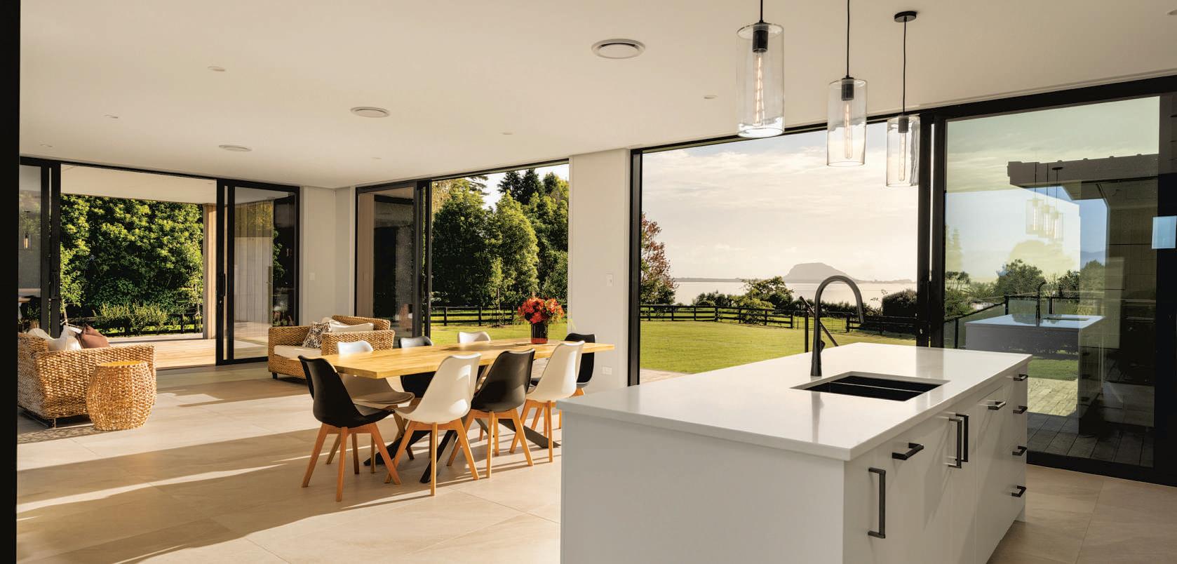 Nestled in seclusion on the fringe of Katikati, the house sits at the end of a tree-lined driveway – security gates highlighting the safety precautions and seclusion the home enjoys. At around 280sqm, it is a house of substance – spacious design, styled and finished with contemporary flair