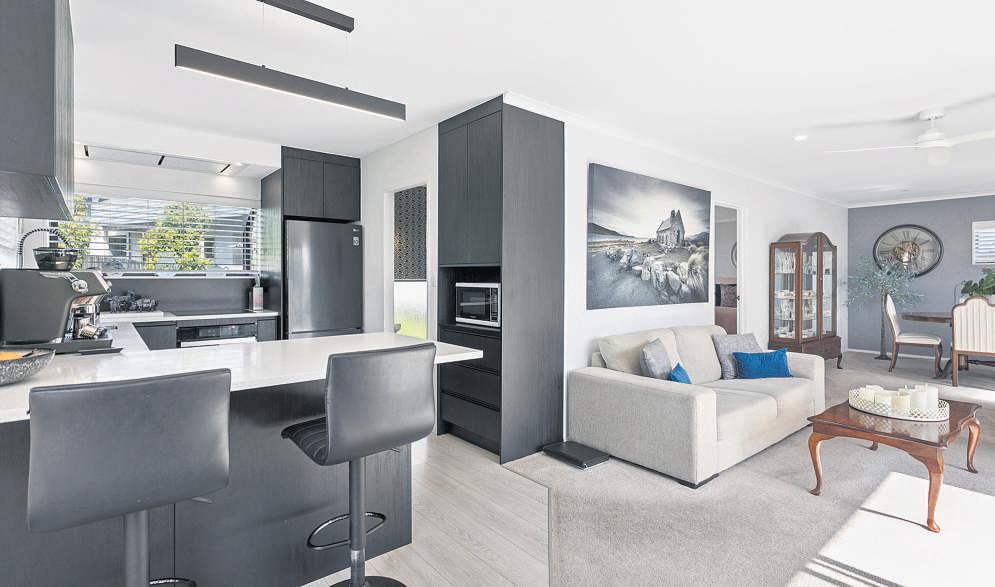 plentytolike;ortheoptiontouseone asanofficeifworkingfromhomeis important.Acarpetedgarageextends theflexibleoptionshereaswell.The laundryisseparate,sothatleavesample roominthegarageformorethanjust parkingthevehicles.Agymperhaps? Playspacefortheyoungsters?Thereis alsoadditionaloff-streetparking. Whatstandsoutmostwiththisproperty isitsthoughtfuldesignandspace. Theheartofthehomeisparticularly generous.Acontemporarykitchen, finishedwithqualityappliancesandthe essentialbar-stoolsetting,linksclosely withbi-folddoorsthatextendlivingand entertainmentouttothesundeckand swimmingpool.There’sampleroomin thisfamilyhubforalargediningsetting andloungefurniture–flexiblespacethat