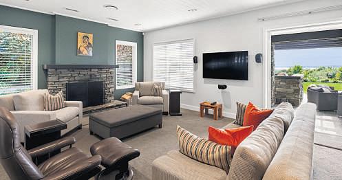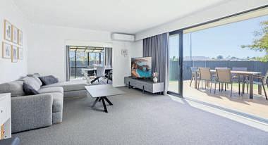 canmovewiththeseasons. Themoodchangesinthesecond lounge,whichoffersseparatespace forkidscomeTVtime,andmoviesin theeveningoncethedrapesaredrawn. Alsolinkedcloselywiththesundeck, swimmingpoolandspaoutside,it’seasy tovisualisetheresortambiencethis homeenjoysduringthepeakofsummer. Twobathroomsgowithoutsaying–a privateensuiteandwalk-inwardrobe forparents,withabathinthefamily bathroomandseparatepowderroom foraddedconvenience.Otherfeatures includeaSmartVentsystemandheat pump.