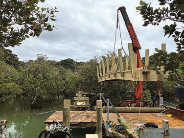 inadequate piles. SteveBowling Contracting pre-fabricated the bridge offsite for installation by barge, and pre-cut boardwalk components thus minimisingthe impact on the sensitive mangrove forest site. Theboardwalkand bridgeform part of apopular walk and the purpose of the project was to ensurethe replacement structures meet current loading requirements, as wellasprovide an attractive amenity for visitors to access and enjoy a tidal wetland area. Steve Bowling Contracting staffpaid careful attention to the quality of workmanship throughout construction. The completed workisanimportant link on the walking track amenity between Paihia and Opua, which is also part of the Te AraroaTrail between Cape Reinga and Bluff