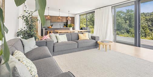 spaces provide flexibility well beyond the norm, with the second lounge easily able to function as a fourth bedroom if required High ceilings warm timber detailing and excellent natural