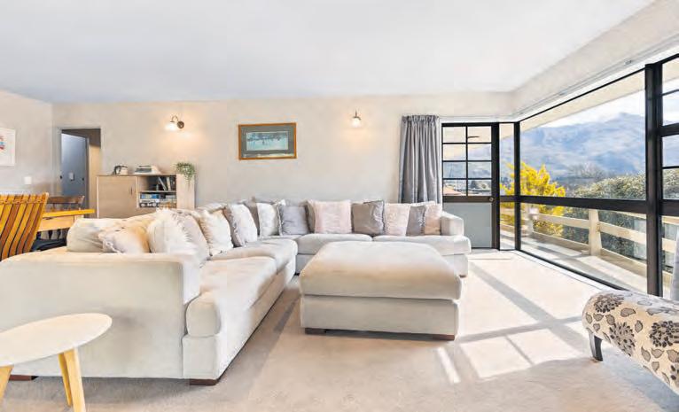 Nestledinaprivate,northfacingposition,thismodernhomeoffersbreathtakingelevatedviewsovertheShotoverRiver andthemountainsbeyond,includingCoronetPeak.Designedforultimatecomfort,itfeaturespremiumdoubleglazing, in-floorhydronicheating,awoodfireplaceandthickerthanstandardwalls.