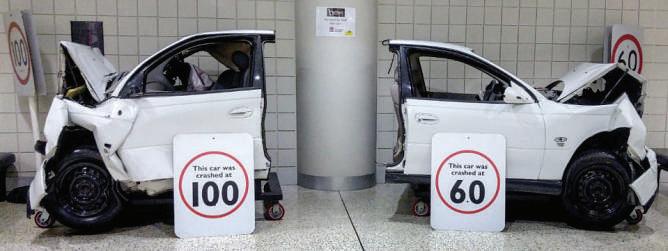 NOTE:*Combineddistancetravelledbyavehicleduringthetimeittakesforadrivertoreact(bluesegment)andthenbrake(redsegment)atdifferentinitialtravelling speeds.Areactiontimeof2.0secondsandafrictionfactorof0.36areassumedconstant.Situationrepresentsa90thpercentilevalueandawetsealedpavement.